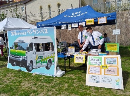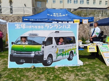 宝塚ホテル前の河川敷で宝塚温泉祭りがありました。ランランバスが出店するというので、応援に行きました。テント一張り中でいろんなグッズを販売していました。