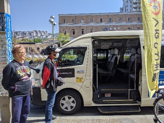 *塩中2年生4人が参加、添乗して利用者のインタビュー、乗降の支援など、その他、啓発用ポスター、作文等を作成